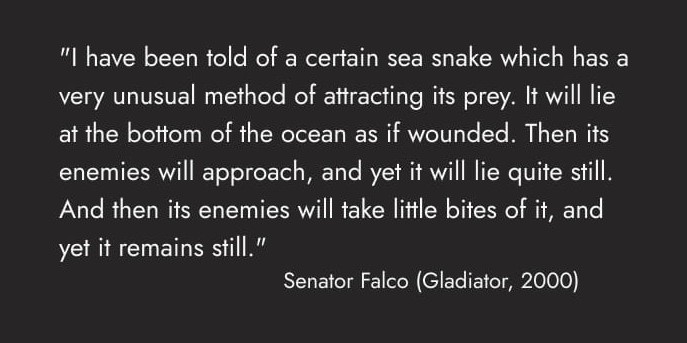 21.02.26 | «They realized that to be in power you didn’t need guns or money or even numbers. You just needed the will to do what the other guy wouldn’t.» Kevin Spacey sine ord. Dette står jo i kontrast til innlegget jeg linket til for et par dager siden, og jeg fastholder innholdet i den teksten. Men Spacey har definitivt et poeng.