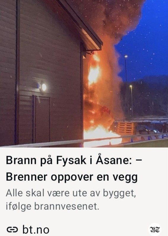 17.02.26 | Tempelet i flammer. Bare timer etter at jeg gjorde en betraktning rundt lokalavisen Bergens Tidende sin artikkel om IFS og erobringsmentalitet, tikket dette bildet inn på telefonen min her jeg sitter på Bergen lufthavn, Flesland. Åsanehallen (nå Fysak) – arenaen for den aller første IFS-turneringen – står nå i full fyr.