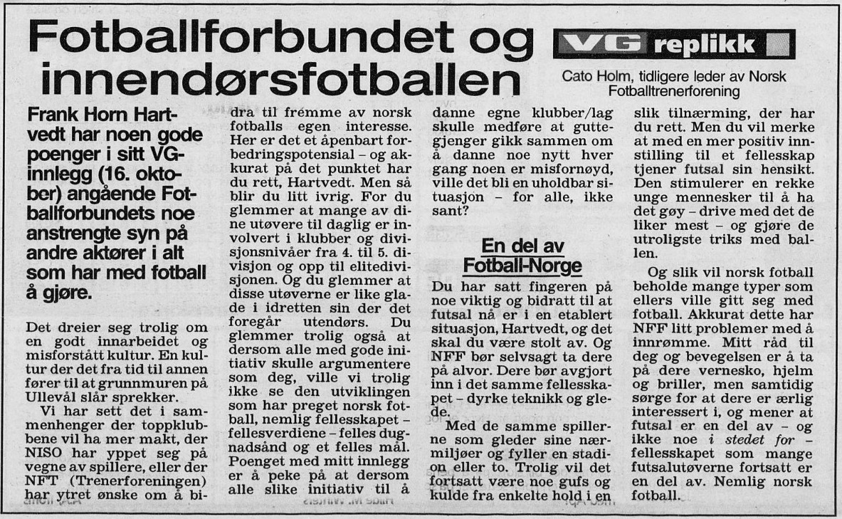 16. oktober 2006: «Fotballforbundets frykt». Forfatter: Frank Horn Hartvedt.