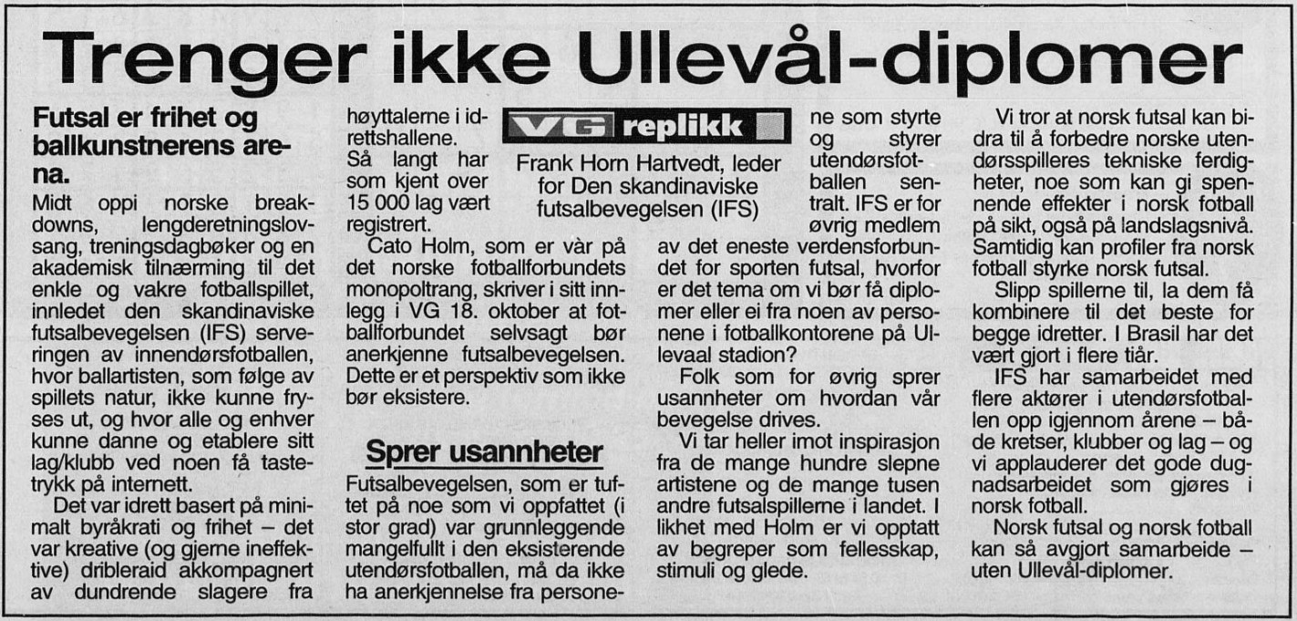 14. november 2006: «Trenger ikke Ullevål-diplomer». Forfatter: Frank Horn Hartvedt.
