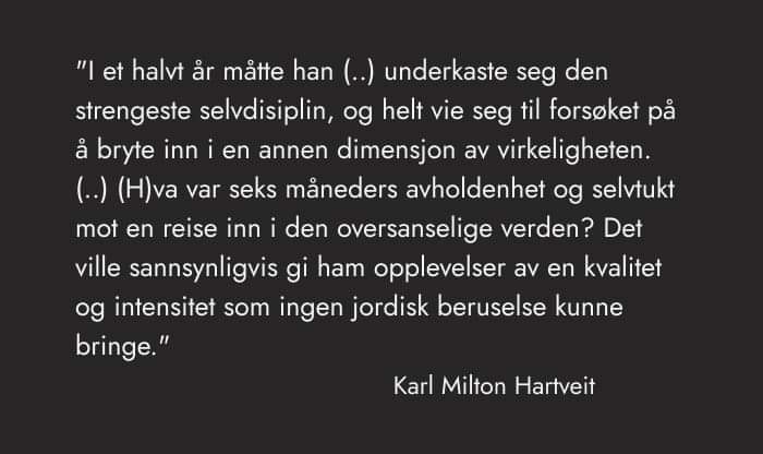 Visjonære Elon Musk vil finne ut «what the hell is going on». Han begynte allerede i ungdomsårene ved å lese Nietzsche og Schopenhauer. Nå invaderer han verdensrommet – for å finne det rette spørsmålet å stille oppi dette mysteriet livet. Men han kommer ikke til å finne ut «what the hell is going on» ved å forholde seg til universet. The last frontier ligger i bevisstheten, i det spirituelt potensielle. Vitenskapen kan maksimere trivsel, men ikke finne svar på de store spørsmålene. Det er bare du som kanskje kan gjøre det, i ditt eget sinn, med dine egne emosjoner, med dine egne endrede bevissthetstilstander. Spørsmålet er om du vil «pushe» deg selv og gjøre noe.
